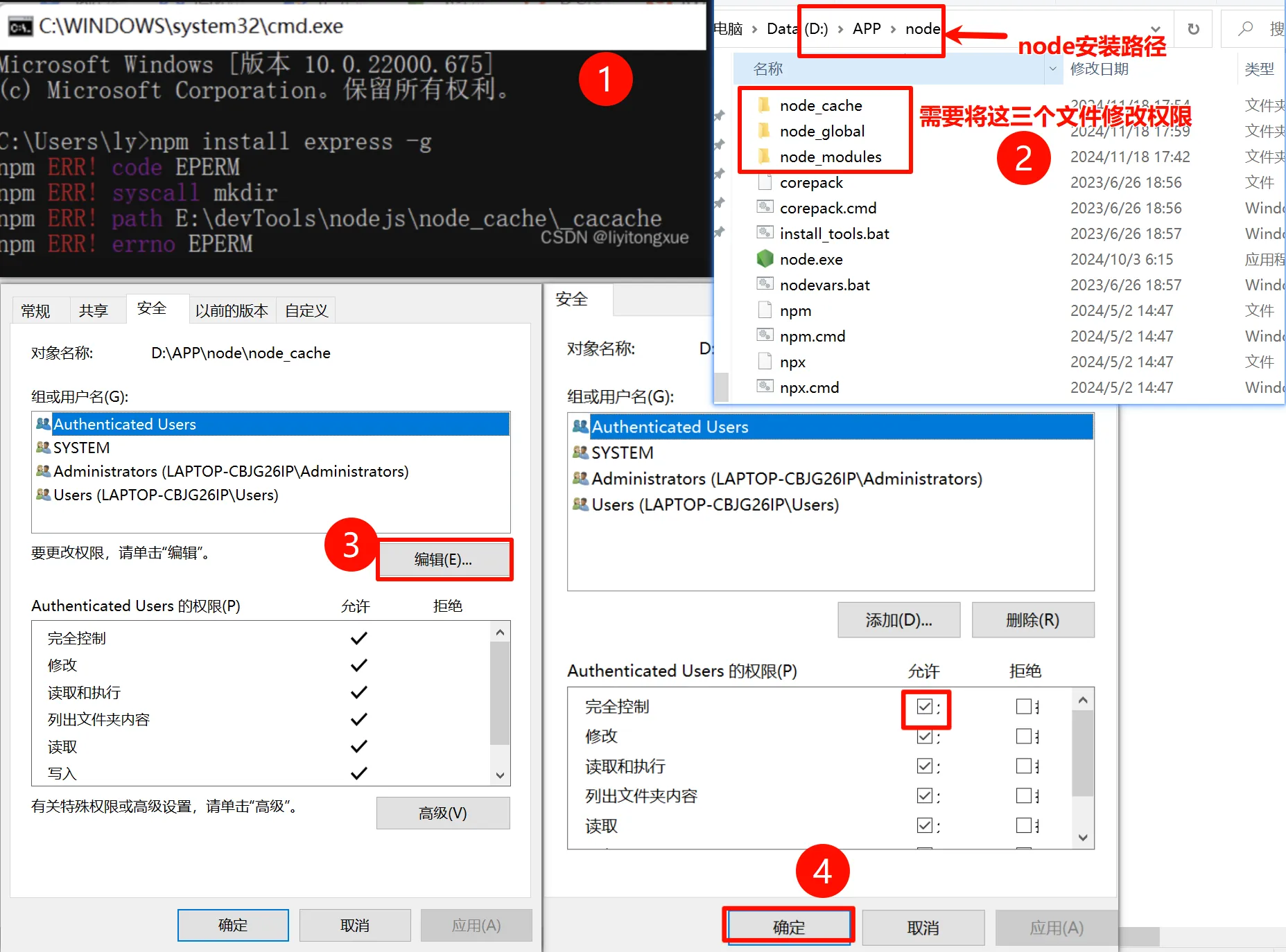 如果出现以下错误,需要将下面三个文件夹修改权限